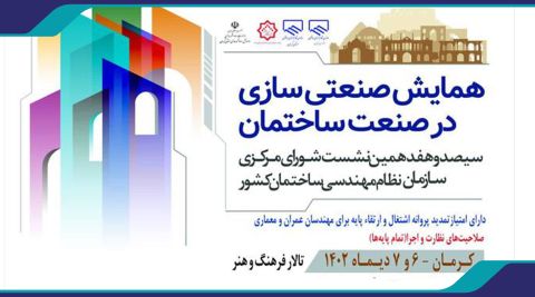 همایش ملی " صنعتی سازی در صنعت ساختمان " همزمان با بیستمین سالگرد زلزله دلخراش بم و با گرامیداشت یاد و خاطره قربانیان این واقعه، ششم و هفتم دی ماه سال جاری در کرمان برگزار خواهد شد. در این همایش اعضای شورای مرکزی سازمان نظام مهندسی ساختمان و روسای سازمان های استان ها، همچنین مقامات وزارت راه و شهرسازی و نیز مسئولان عالیرتبه استانی حضور خواهند داشت. قابل ذکر است که دوره آموزشی با امتیاز تمدید پروانه و ارتقاء پایه در صلاحیت های نظارت و اجرا برای مهندسان عمران و معماری نیز همزمان با همایش برگزار می گردد(حضوری برای اعضای ساکن در استان کرمان و مجازی برای اعضای سایر استانها)