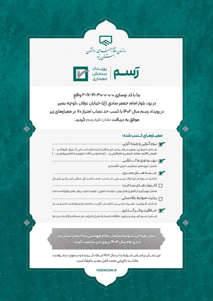 نشان نقره | رسم 1402 | کد نوسازی : 0-0-0-30-41-17-2