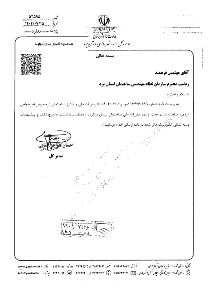در اجرای ماده ۳۳ قانون نظام مهندسی و کنترل ساختمان، دفتر مقررات ملی و کنترل ساختمان قصد دارد نسبت به بازنگری و ارتفاء متون فنی مباحث ششم هفتم و نهم مقررات ملی ساختمان اقدام نماید.