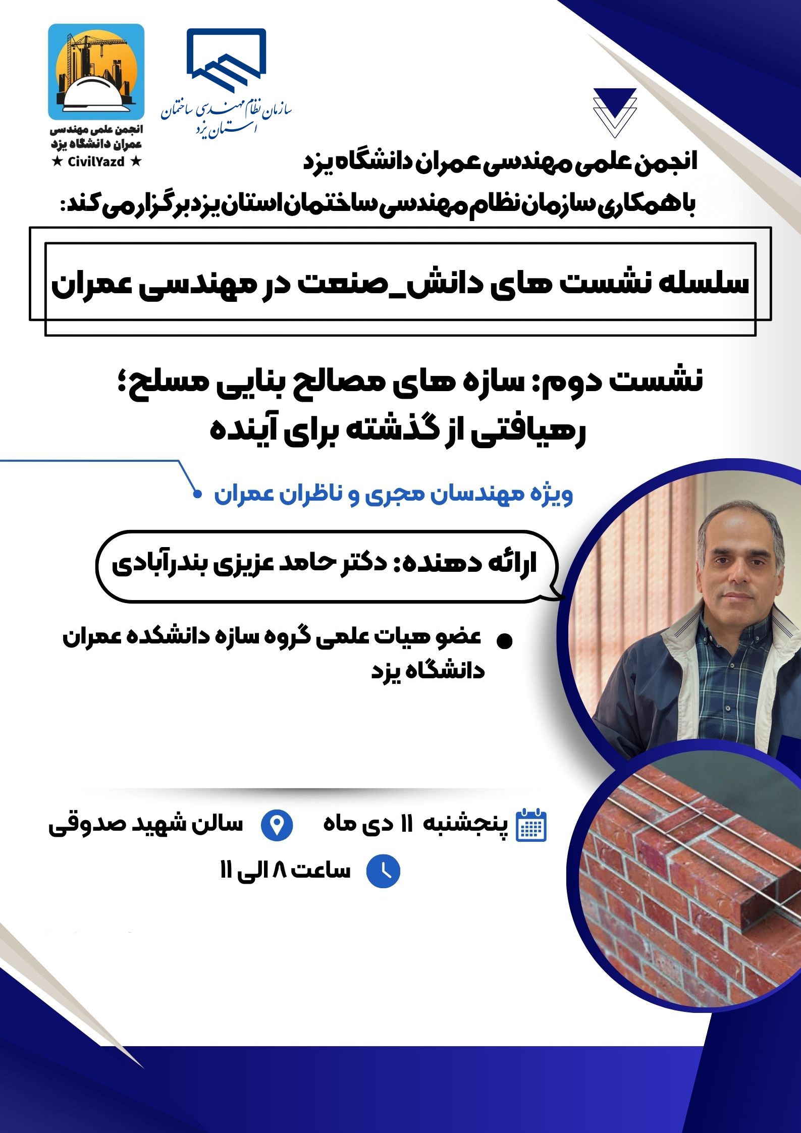 👥 حاضران مدعو: مهندسان مجری و ناظران عمران استان یزد و دانشجویان دانشکده مهندسی عمران