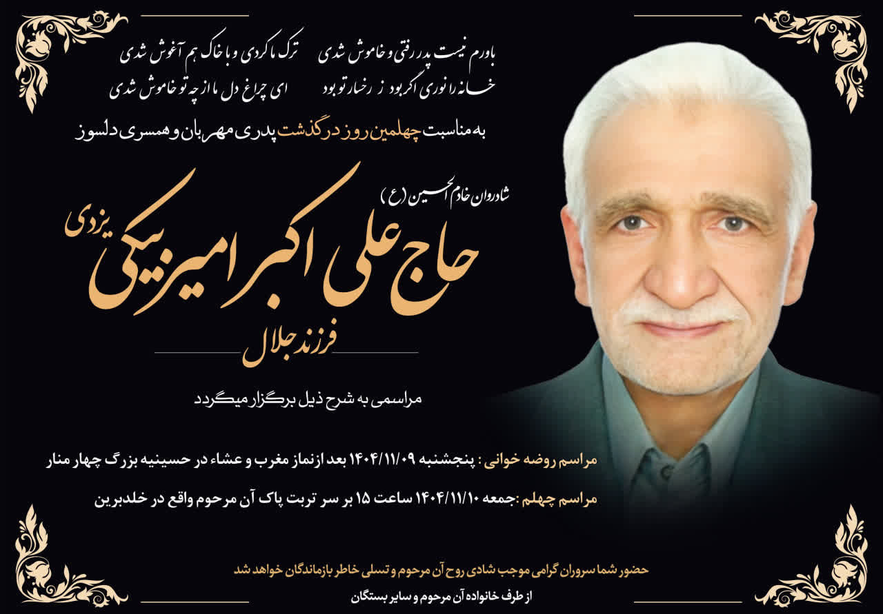 آگهی مراسم چهلمین روز درگذشت مرحوم حاج علی اکبر امیربیکی